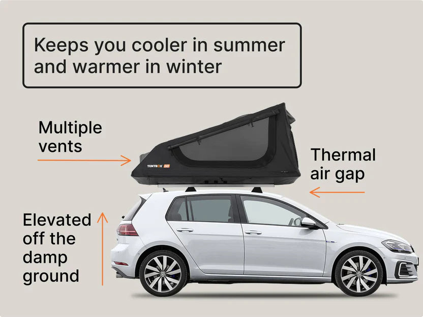 The GO is our most streamlined TentBox – ultra-lightweight, cleverly designed, and ideal for spontaneous getaways.