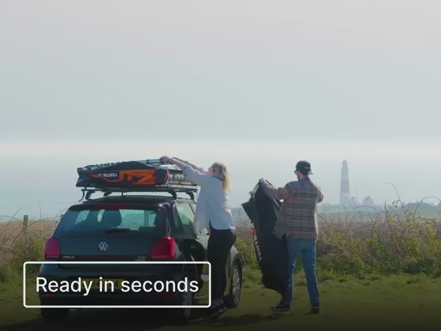 It opens manually in around 5 minutes, with a simple fold-out design that’s easy to master. Inside, a plush fitted mattress (that stays inside when packed down) and double skylights create a cosy, airy sleeping space.