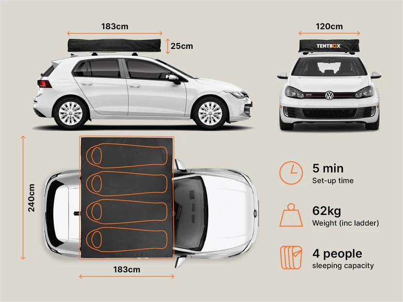 The Lite XL is our 4-berth roof tent, with a super-king mattress that comfortably sleeps four adults – great for families, pets, or anyone who likes extra space.